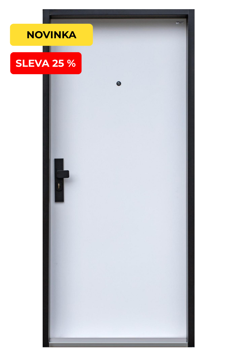 Bezpečnostní dveře v designu HLADKÉ v dekoru bílá, černá zárubeň