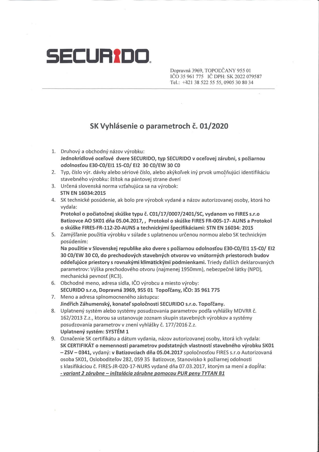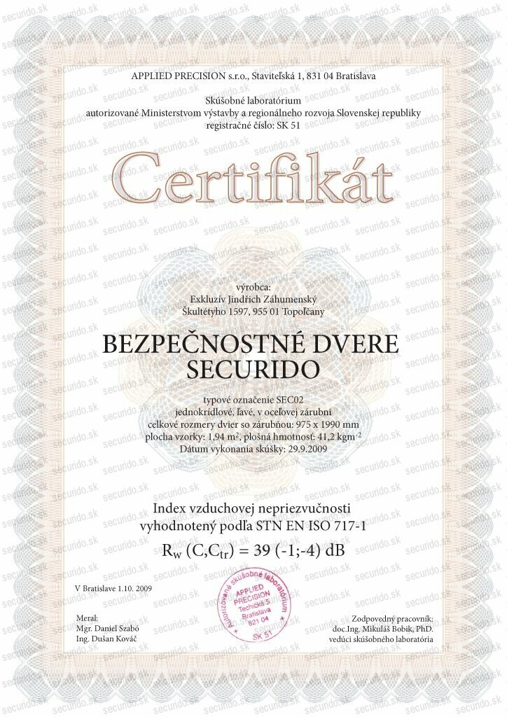 - A. Celokovové bezpečnostní dveře s levou a pravou orientací otevírání, s rozměry: výška křídla = 1950 mm (výška dveří včetně rámu 2025 mm), šířka křídla = 800 nebo 900 mm (šířka dveří včetně rámu je 940 nebo 1040 mm).