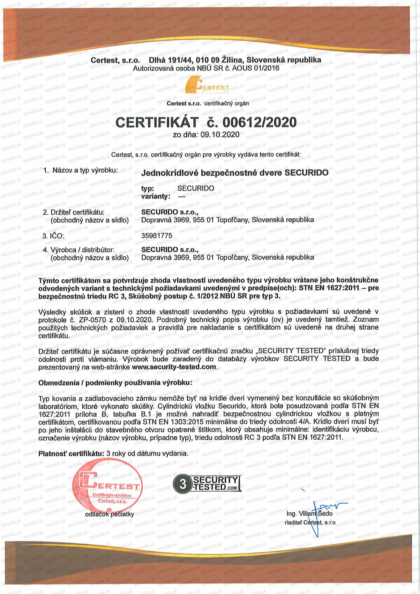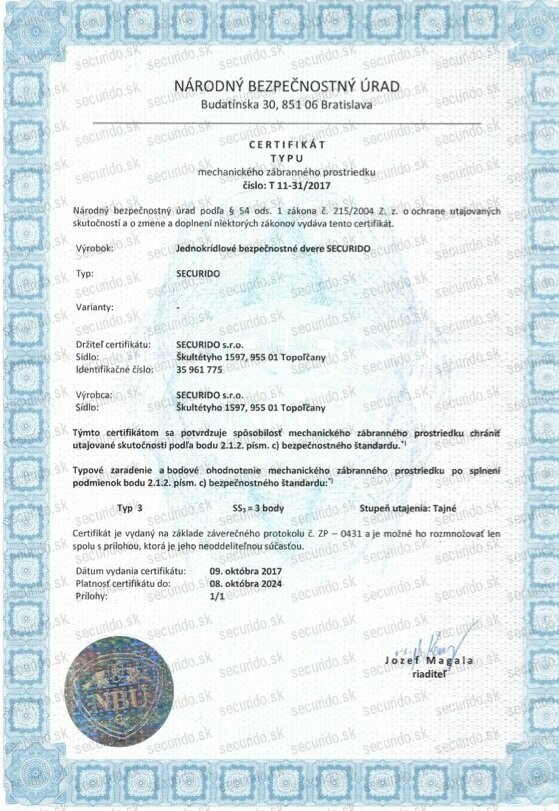 - Spolehlivě ochrání před zloději – certifikace ve 3. bezpečnostní třídě.