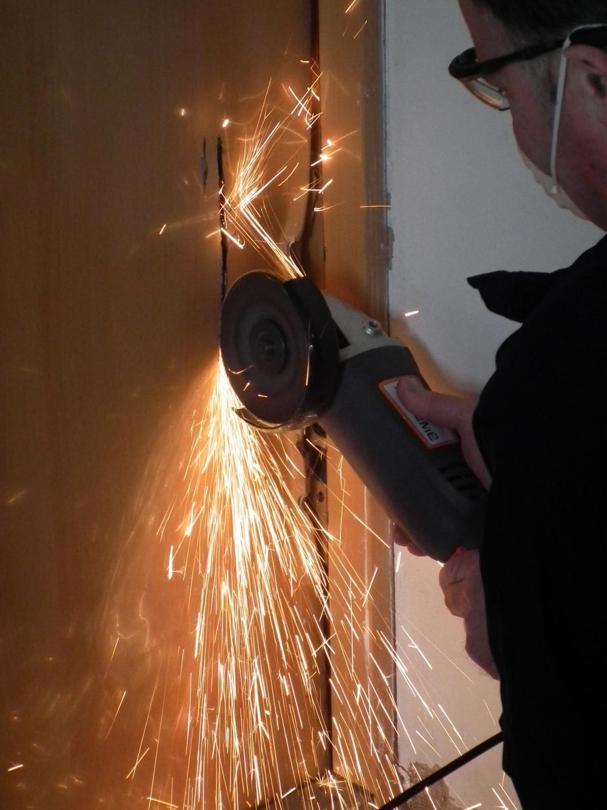 Jak vidíte na fotografiích níže, dveře nesou stopy pokusu o násilné vniknutí pomocí páčení i elektrického nářadí. Kromě povrchových kosmetických škod však bezpečnostní dveře odolaly bez problému.