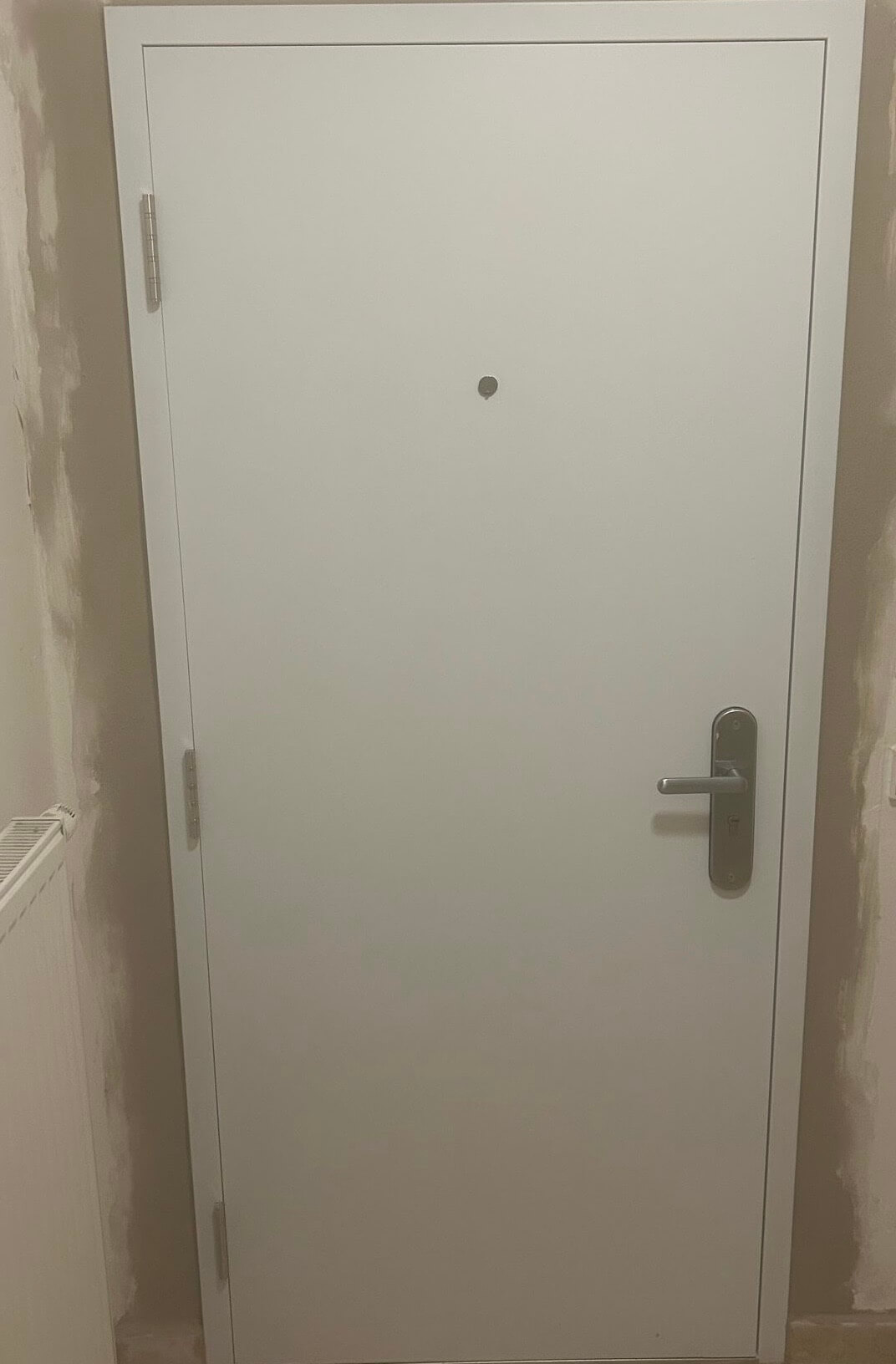 Naše zákaznice z Brna se na nás obrátila s cílem zvýšit zabezpečení svého bytu. Vybrala si elegantní a funkční řešení v podobě bezpečnostních dveří v bílé barvě z obou stran, které byly doplněny o bezpečnostní kování s lesklou povrchovou úpravou typu F3/D. Součástí realizace byla nejen suchá montáž s použitím protipožární pěny, ale i demontáž původních dveří, pečlivé zednické zapravení otvoru a likvidace starého vybavení. Celá realizace proběhla hladce a k plné spokojenosti zákazníka.