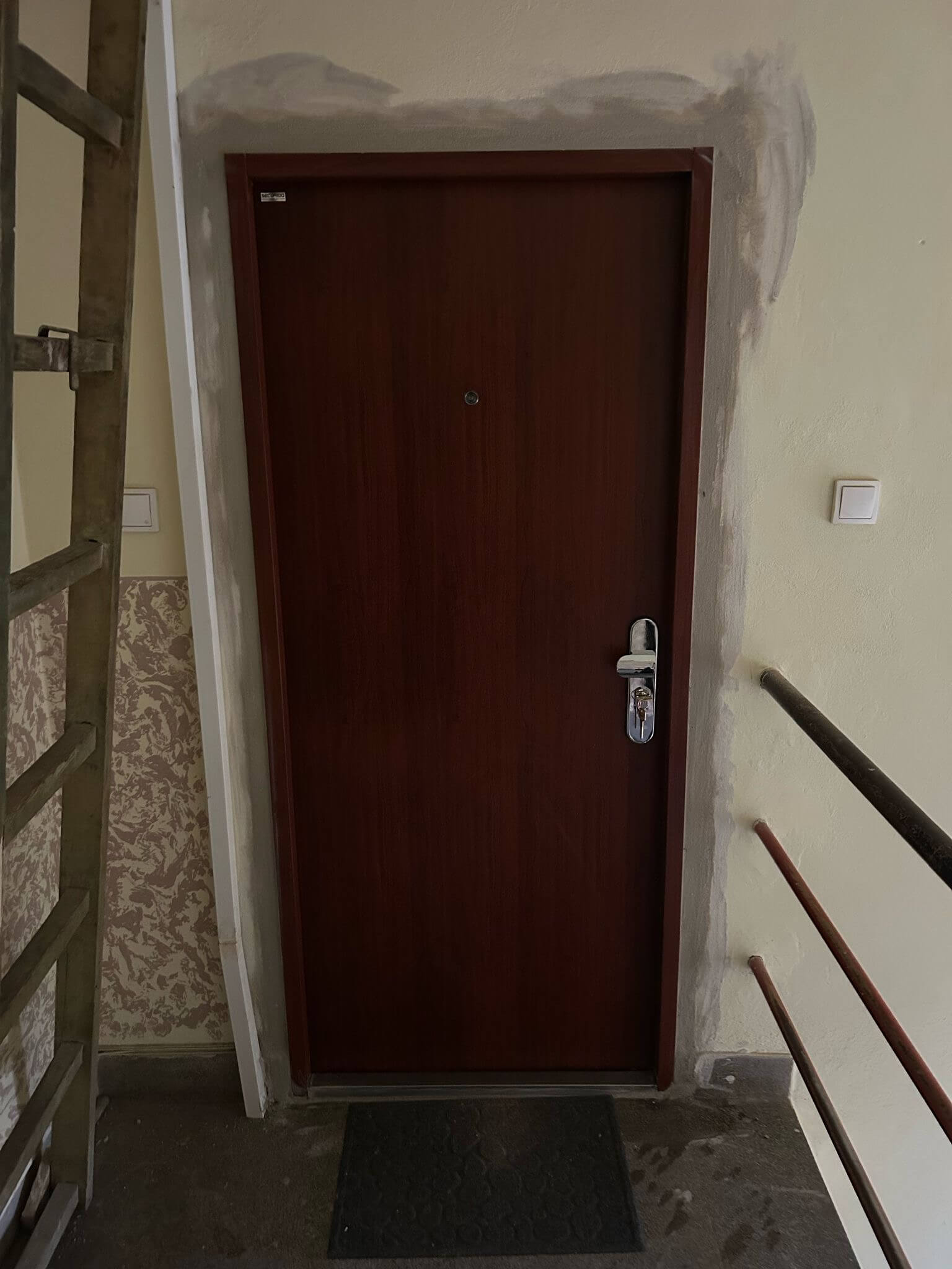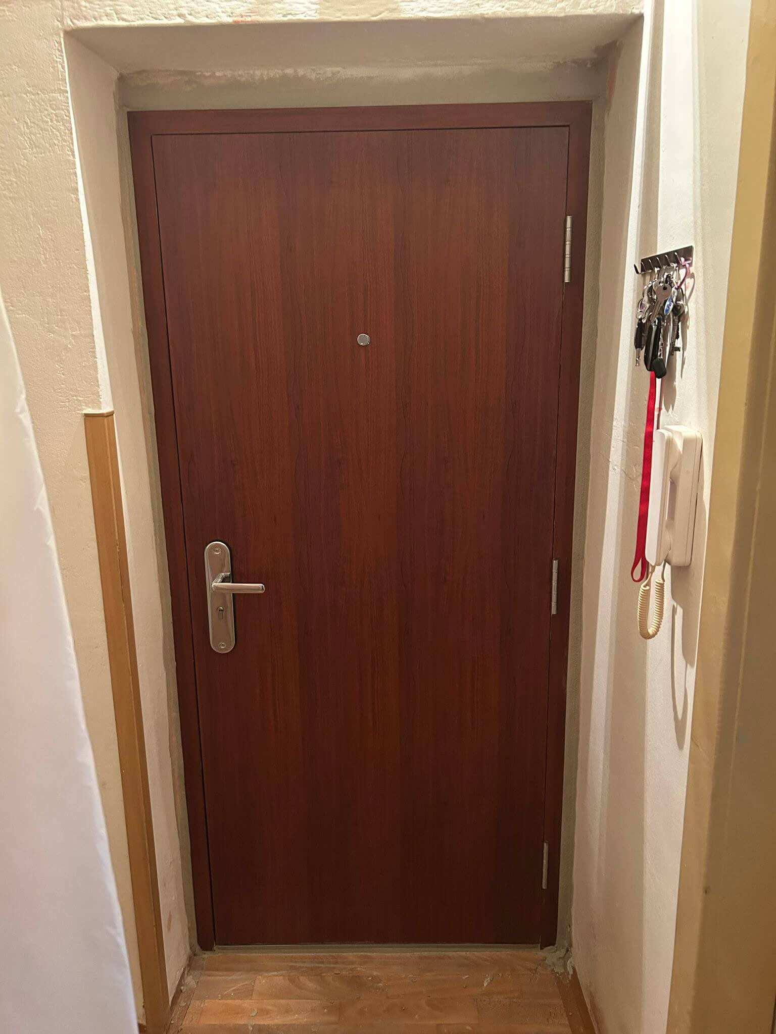 Zákaznici z Pohořelic jsme pomohli s výměnou starých vstupních dveří za bezpečnější a esteticky výraznější variantu. Vybrala si model v dekoru ořech, který stylově doplnil interiér jejího bytu. Dveře byly osazeny bezpečnostním kováním v lesklém provedení a zasklením typu F3/B. Součástí realizace byla kompletní výměna dveří od demontáže původního křídla, přes suchou montáž s použitím protipožární pěny, až po zednické zapravení vstupního otvoru. Samozřejmostí byla také likvidace starých dveří. Montáž proběhla bez problémů, zákaznice byla s výsledkem naší práce spokojená.